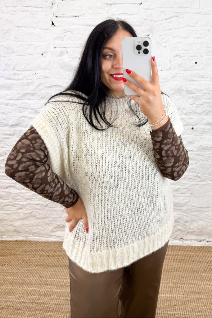 Elevate your layering game with The Metta Knitted Vest in Cream. Crafted from chunky yarn, this cosy vest offers both warmth and texture, making it a versatile piece for transitional seasons. Its relaxed fit pairs effortlessly with shirts or dresses, adding a stylish, tactile dimension to your outfit. Perfect for creating that effortlessly chic, layered look.