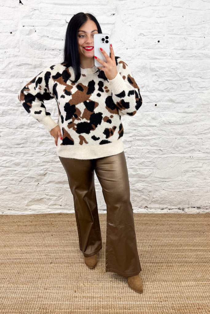 Embrace the latest trend with The Omea Cow Print Jumper, a cosy piece that blends western-inspired charm with contemporary style. Its soft fabric ensures comfort while the bold cow print adds a playful edge to your wardrobe. Perfect for layering or wearing solo, this jumper effortlessly elevates casual looks with a touch of rustic flair.