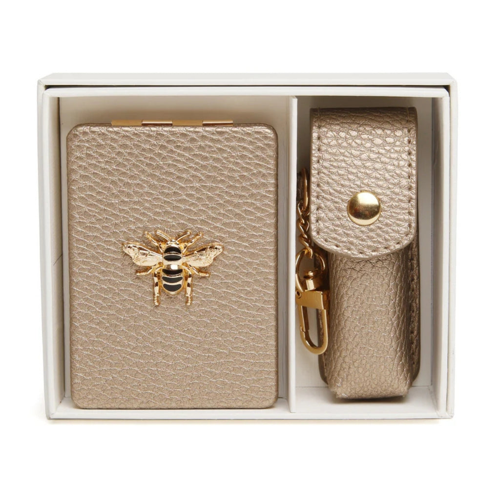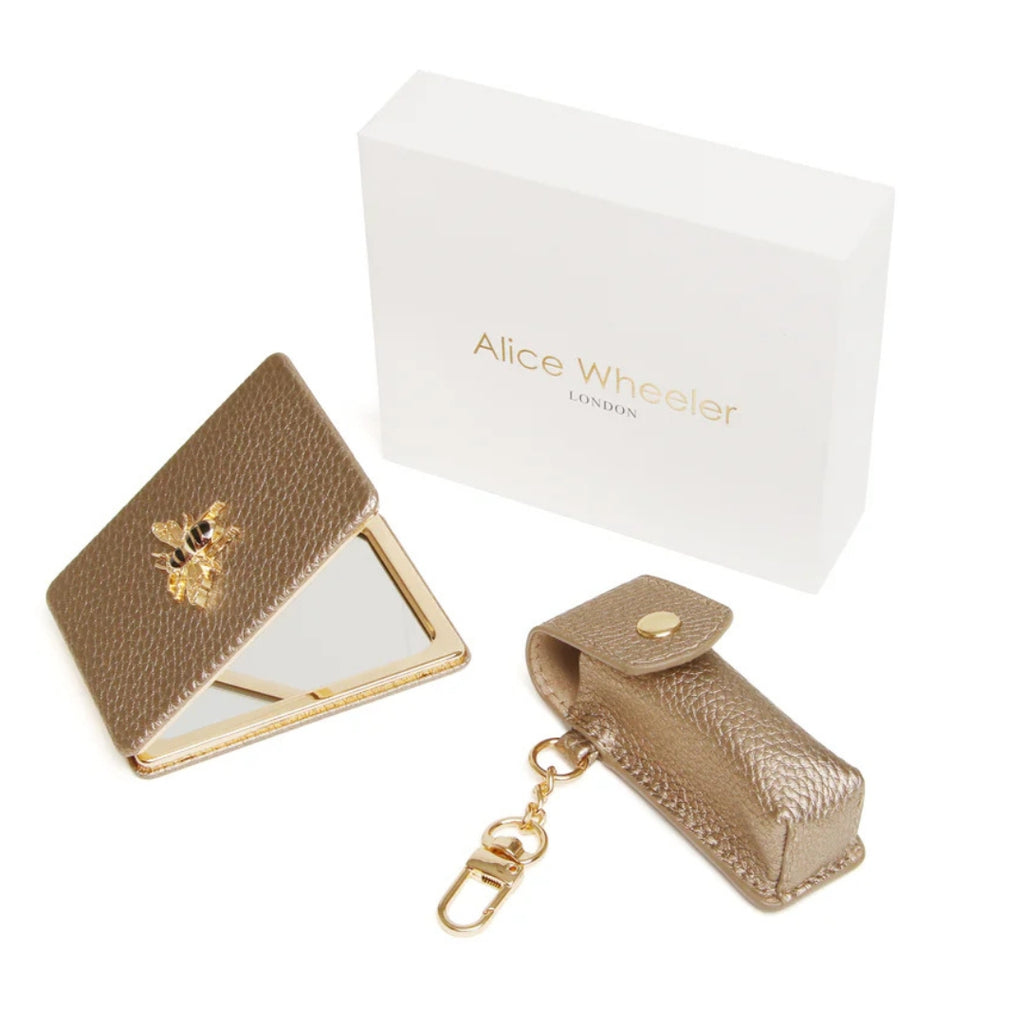 Alice Wheeler Bronze Oblong Compact Mirror & Lipstick Holder Gift Set