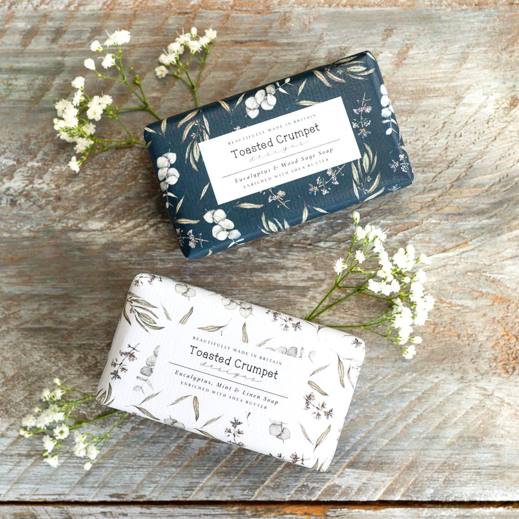 Discover the ultimate luxury bathing experience with this carefully crafted Eucalyptus, Mint & Linen Soap Bar. Enriched with Shea Butter, this handcrafted bar is infused with essential ingredients and presented in a beautifully designed fully recyclable wrap.