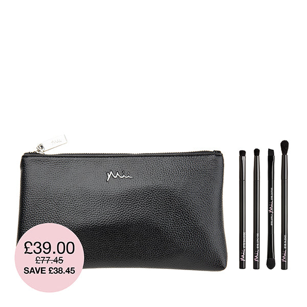 • Includes four eyeshadow brushes, a protective silky pouch and black beauty bag