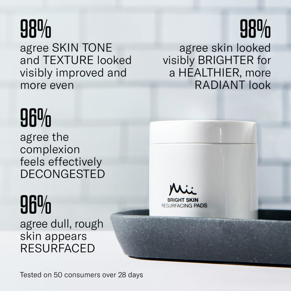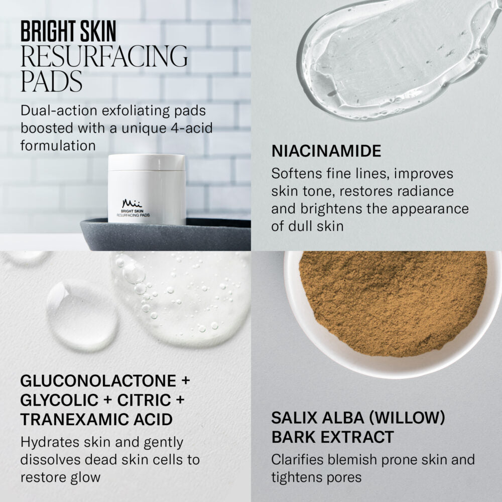 Upgrade your daily skincare routine with Mii's Bright Skin Resurfacing Pads. Made from biodegradable materials, these pads offer dual-action exfoliation thanks to the unique 4-acid formulation - including AHA, PHA, BHA, and TXA. These pads are specifically designed to effectively target dull and rough skin, gently removing dead skin cells without drying out your skin. Regular use will improve your skin's texture, even out skin tone, and reduce the appearance of pores and blemishes for a radiant and luminous complexion.