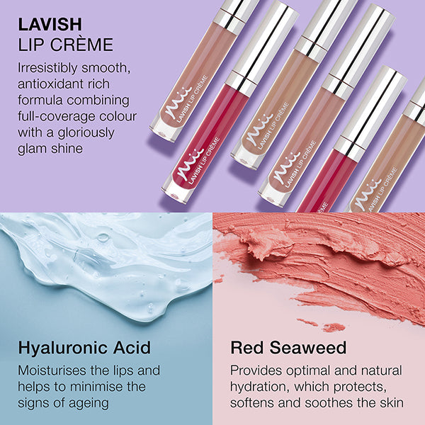 Instantly add full coverage colour and glorious non-sticky shine with Mii's weightless and hydrating lip crème lip gloss. The irresistibly silky formula harnesses antioxidant-rich Red Seaweed and nourishing Hyaluronic Acid to plump, protect and lock in moisture for sumptuously smooth lips. Combining the colour intensity of a lipstick with the high shine of a gloss, the crème swipes on effortlessly without compromising on staying power.