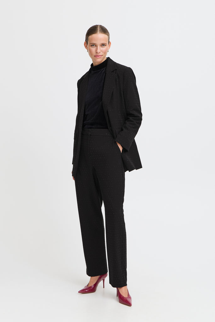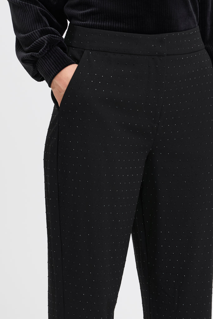 Expertly crafted with a tapered leg, the Danta Trousers feature subtle stud sparkles and pairs perfectly with the Danta Blazer. This combination offers a sleek and sophisticated look, making it an ideal choice for any formal event or festive party setting. Elevate your style with the Danta Trousers in black.