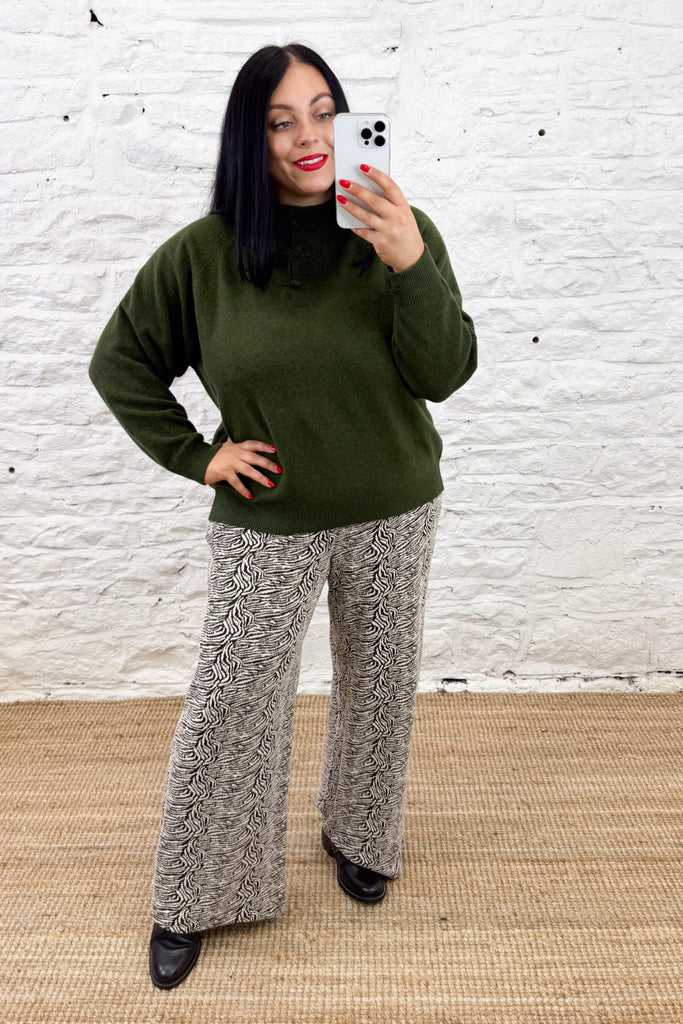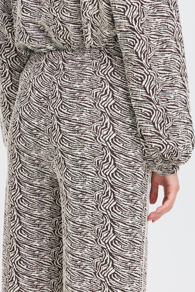 Elevate your wardrobe with The Elly Trousers, featuring a funky chocolate brown textured print that adds depth and character to your look. These trousers blend bold style with versatile comfort, perfect for making a statement whether at work or out on the town. Pair them with a sleek blouse or a casual tee to showcase their unique pattern and flattering fit.