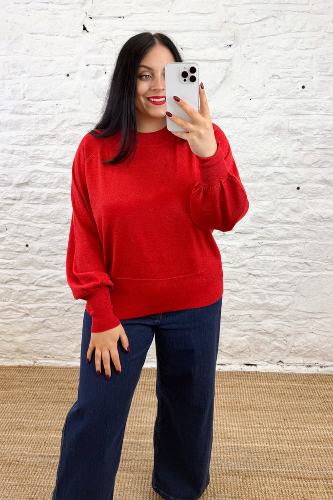 The Mobbe Jumper in red brings a delicate shimmer that effortlessly enhances any look, whether casual or chic. Crafted from premium materials, this versatile piece adds a refined touch to your wardrobe essentials. Perfect for the party season, it’s designed to elevate your style with understated elegance and comfort.