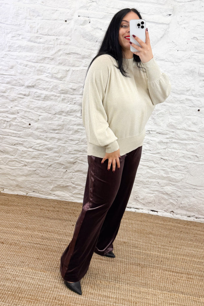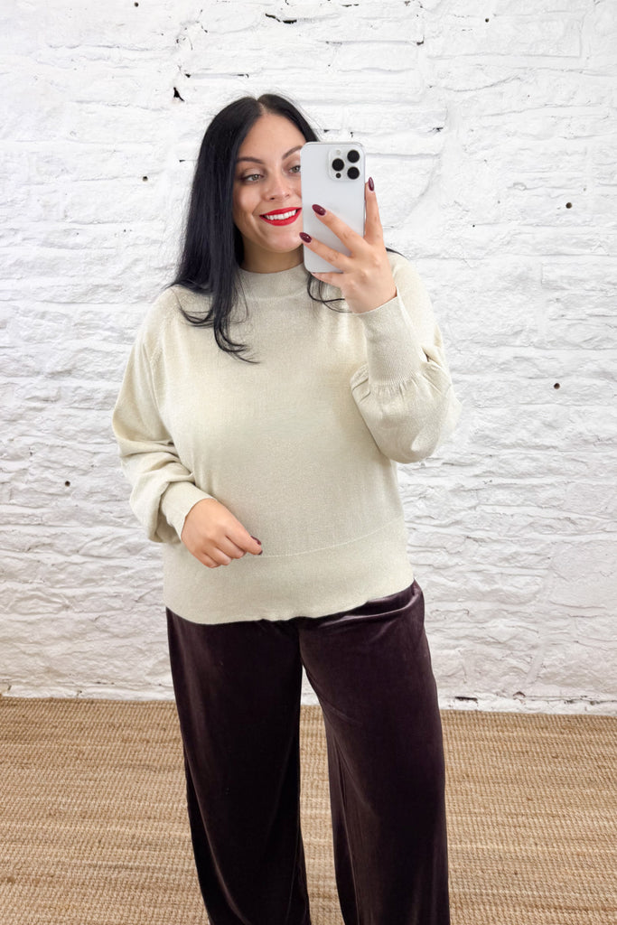 The Mobbe Jumper in nude brings a delicate shimmer that effortlessly enhances any look, whether casual or chic. Crafted from premium materials, this versatile piece adds a refined touch to your wardrobe essentials. Perfect for the party season, it’s designed to elevate your style with understated elegance and comfort.