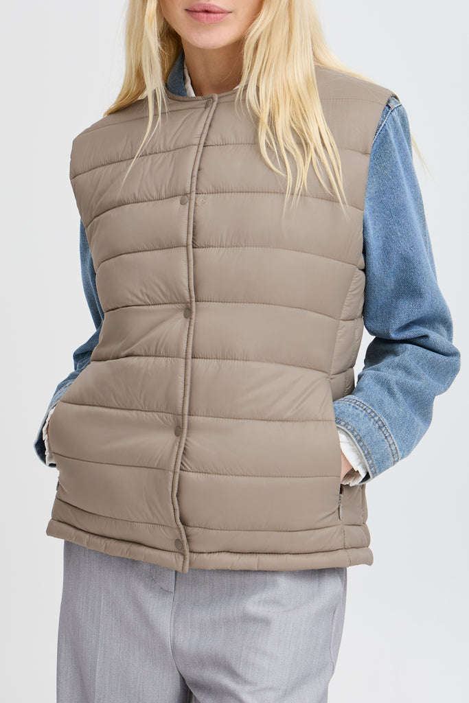 Expertly designed for maximum comfort and functionality, The Berta Waistcoat in Beige is a must-have addition to your wardrobe. With its padded design, this waistcoat not only keeps you warm and snug but also allows for easy layering over knitwear. The pockets and popper button fastening add convenience to this versatile piece.