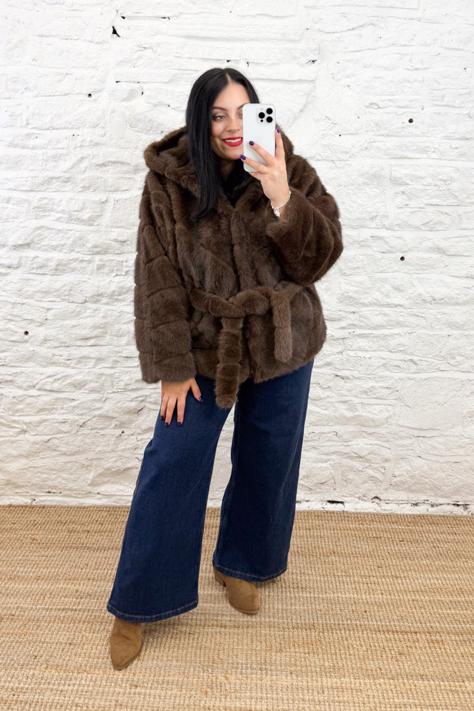 Elevate your outerwear with The Drew Faux Fur Hooded Jacket, featuring a plush faux fur texture and a flattering tie belt that cinches the waist for a chic silhouette. The cosy hood adds a layer of warmth and style, making this jacket perfect for crisp days when you want to stay effortlessly elegant. Whether layered over casual or dressy looks, it’s a luxurious statement piece that blends comfort and fashion seamlessly.