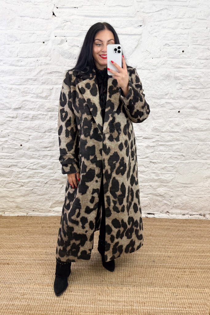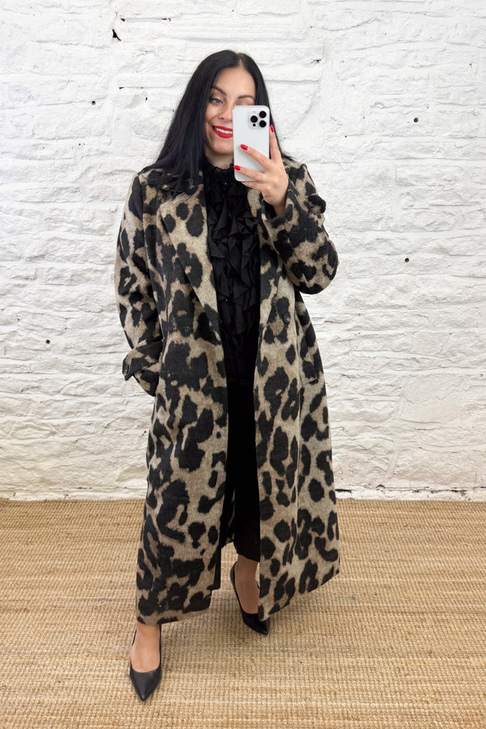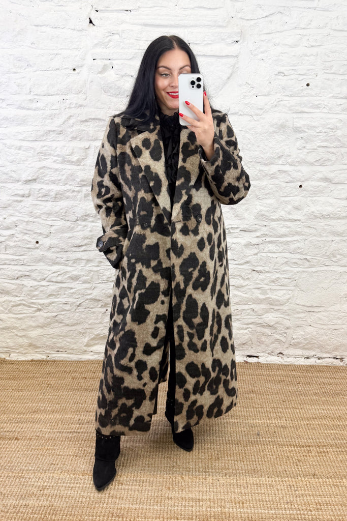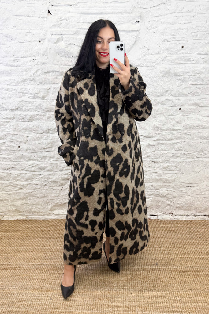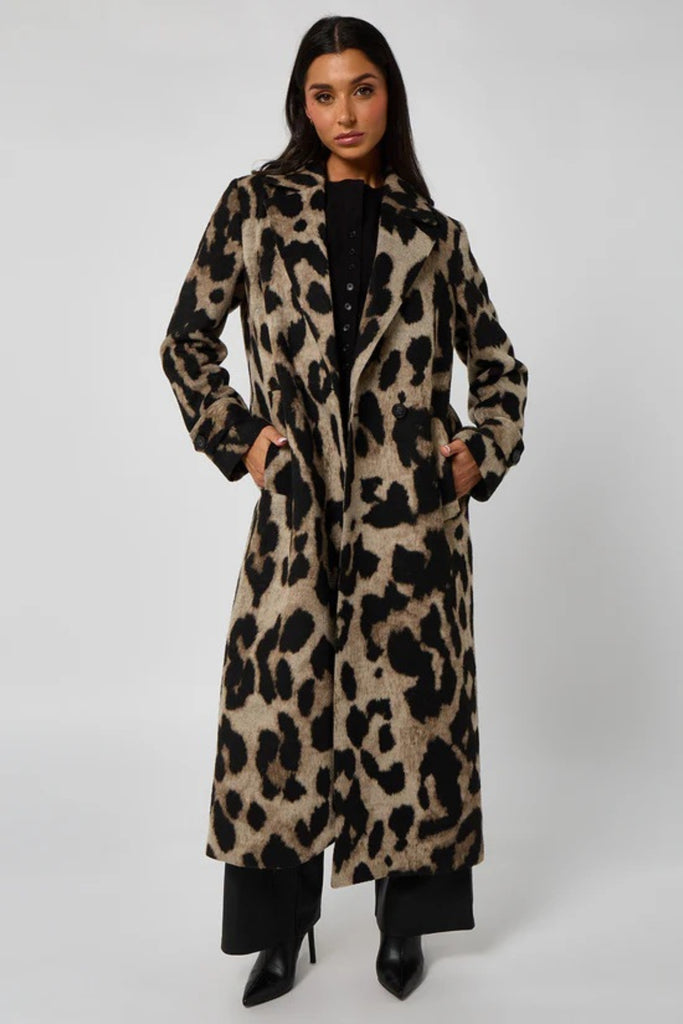 The Halliwell Leopard Print coat combines classic tailoring with eye-catching animal print for a truly standout look. Its longline cut creates a sleek, elongating silhouette, while premium fabric ensures comfort and warmth. Ideal for formal events or sharpening everyday outfits, this coat offers effortless sophistication with a bold edge.
