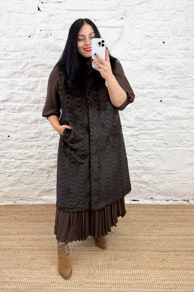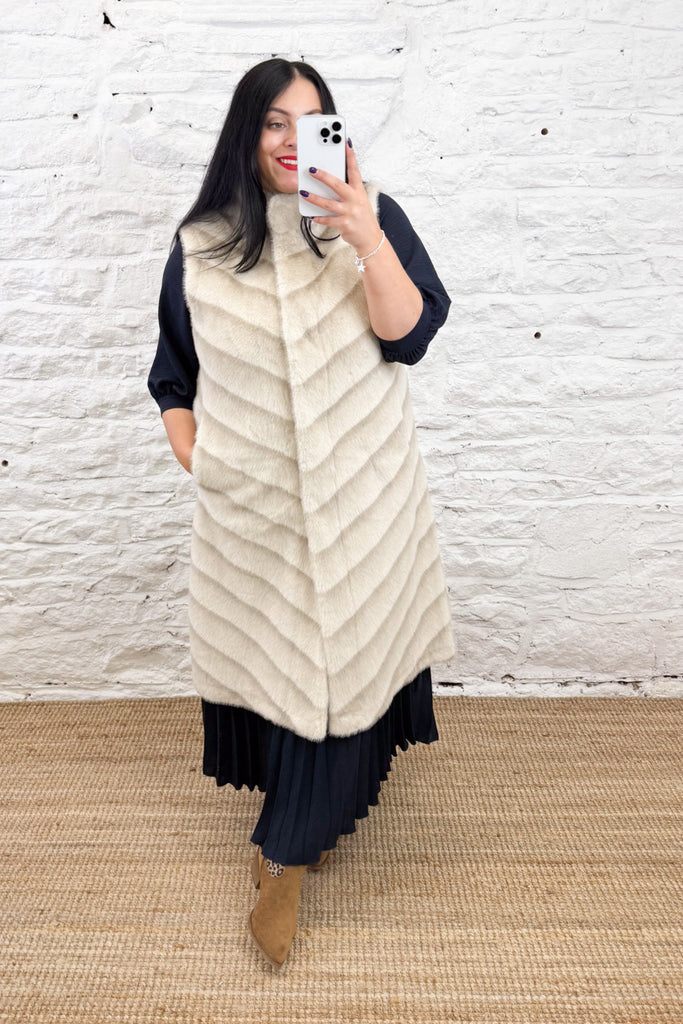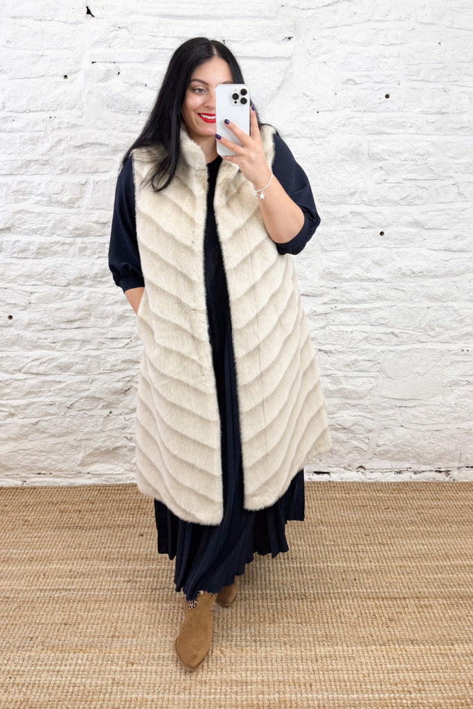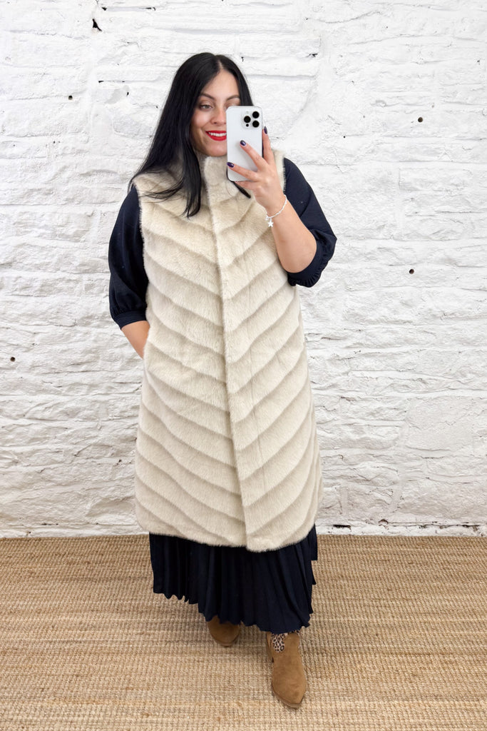 Elevate your layering game with The Lyss Longline Faux Fur Gilet, a statement piece designed to add luxurious texture and warmth to any outfit. Its sleek, elongated silhouette creates a flattering frame while the plush faux fur delivers a soft, tactile finish perfect for autumn and winter styling. Whether draped over tailored separates or casual jeans and knits, this gilet transforms simple looks into effortlessly chic ensembles.