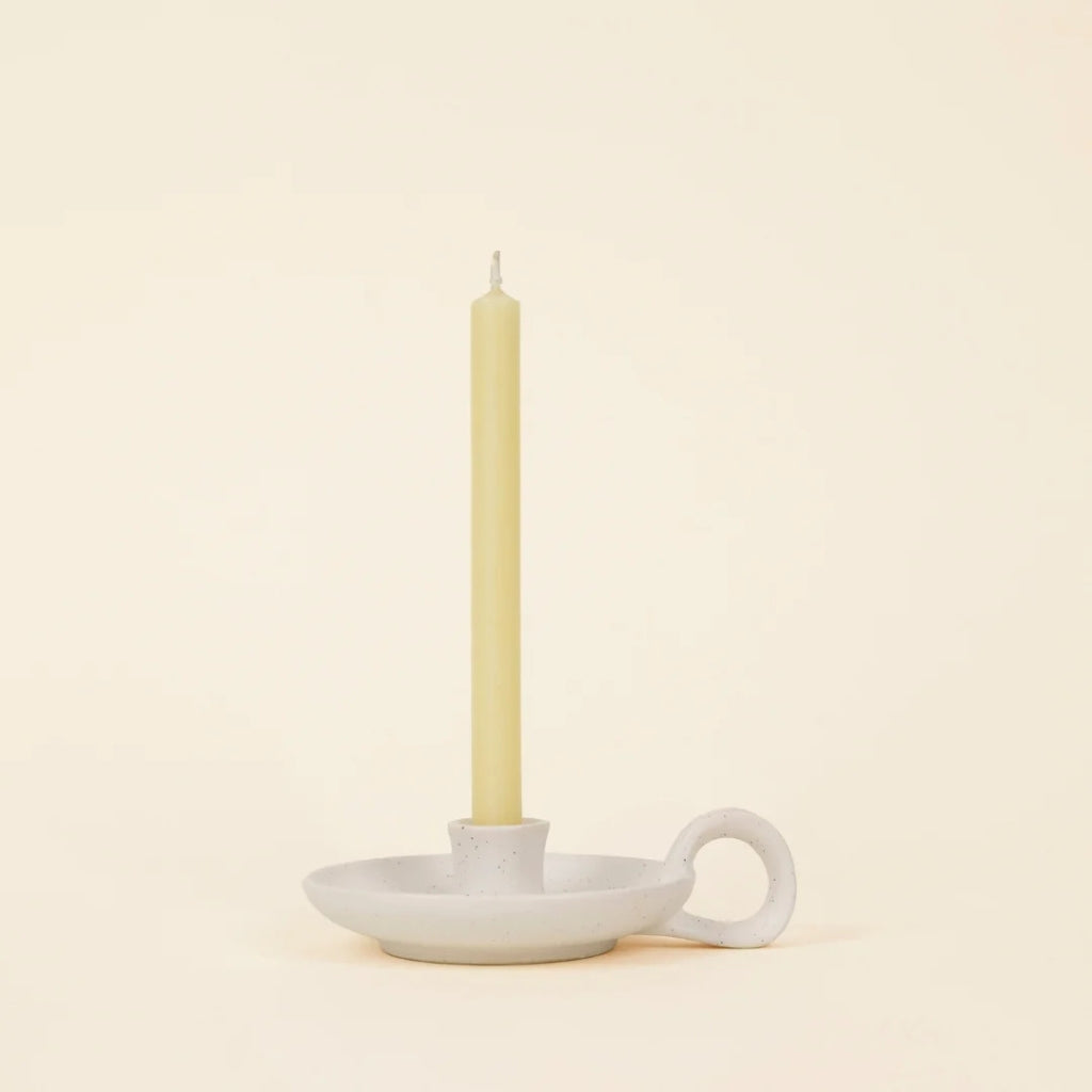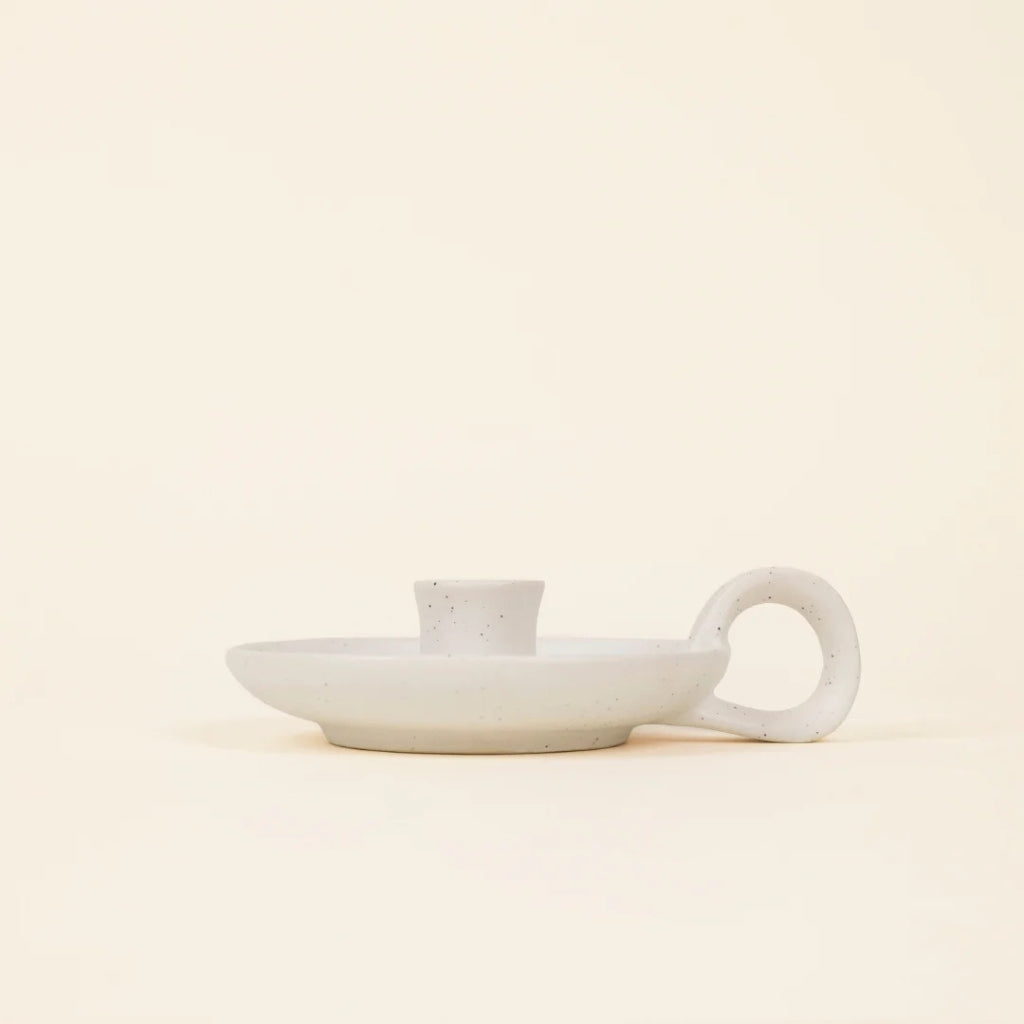 St. Eval White Speckle 1/2" Candle Holder with Handle