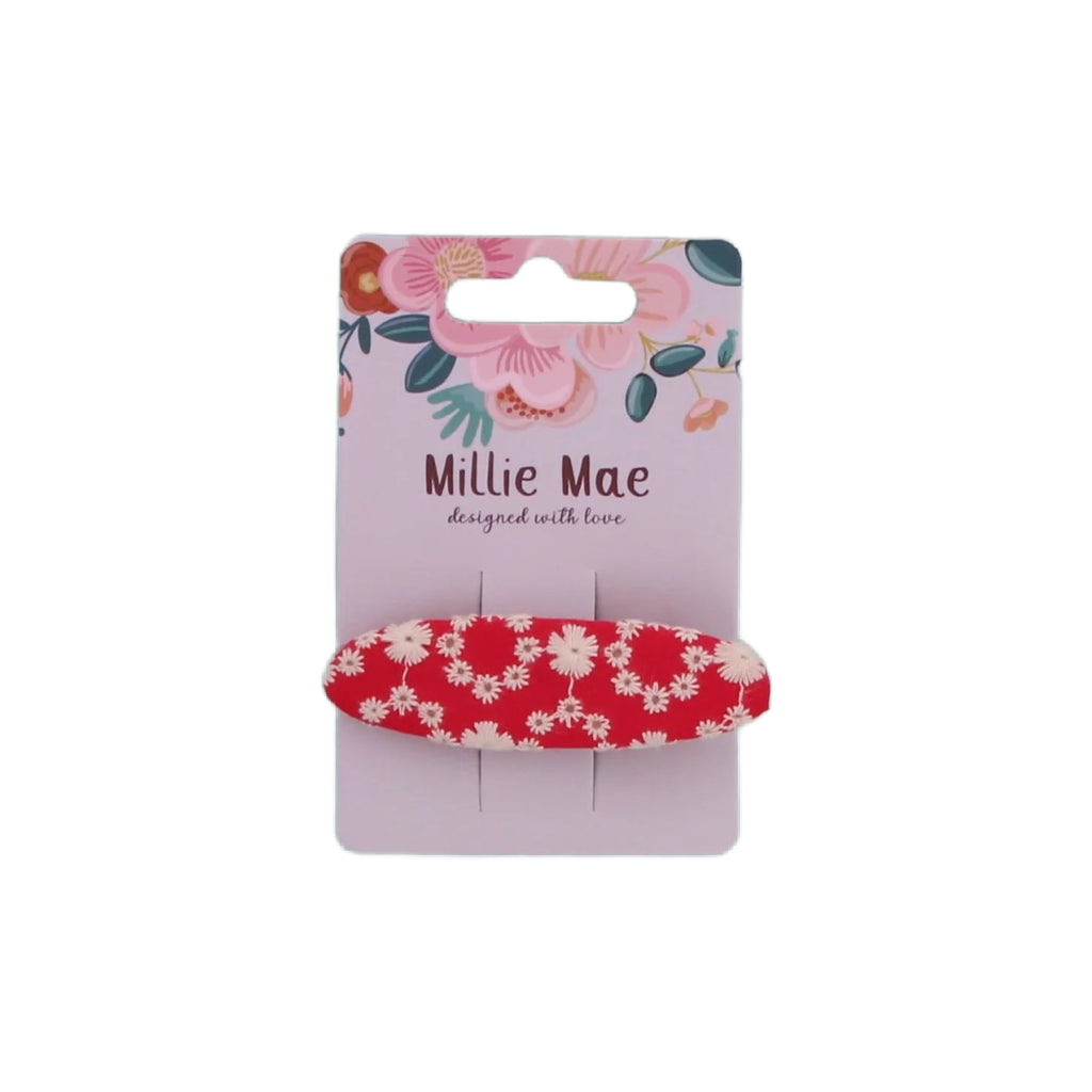 This fabric hair clip features a charming embroidered daisy chain design, perfect for creating a stylish half up look or using as a side clip. The crocodile clip ensures a secure hold, while its handmade construction guarantees durability and comfort.