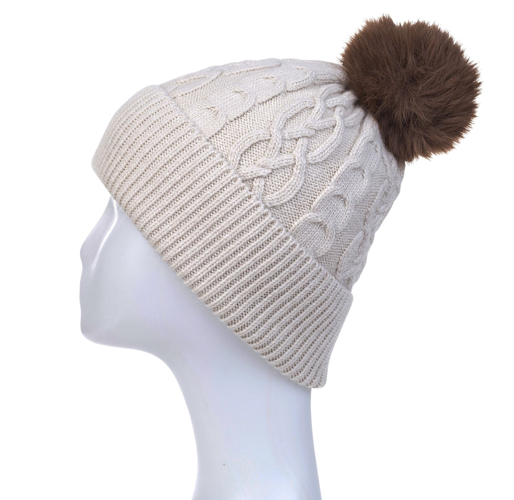 The Cable Knit Pom Pom Hat | Linen Mocha