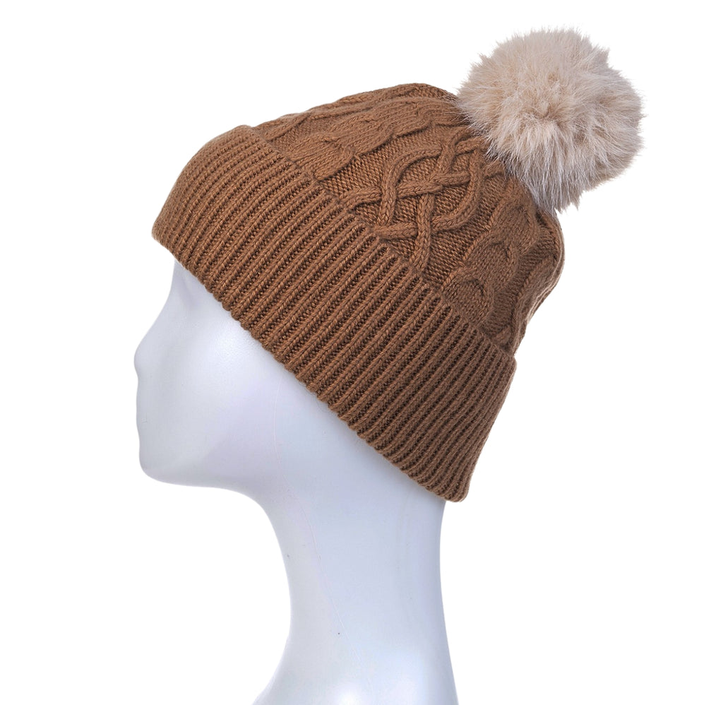 Introducing the Cable Knit Pom Pom Hat. Made with luxurious faux fur and stylish cable knit design, this hat is perfect for keeping you warm and stylish on cold winter days.
