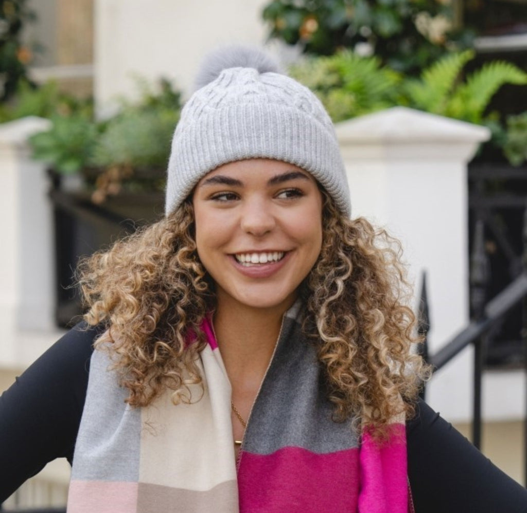 Introducing the Cable Knit Pom Pom Hat. Made with luxurious faux fur and stylish cable knit design, this hat is perfect for keeping you warm and stylish on cold winter days.