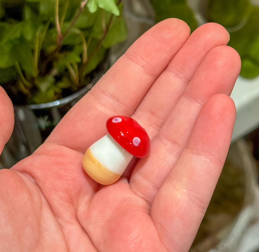 Elevate your home decor with this tiny Glass Toadstool. Perfect for adding a natural touch to any space, this unique piece is great for sitting near plants and creating a calming, organic vibe. Crafted from quality glass, it's a must-have for any plant lover or nature enthusiast.