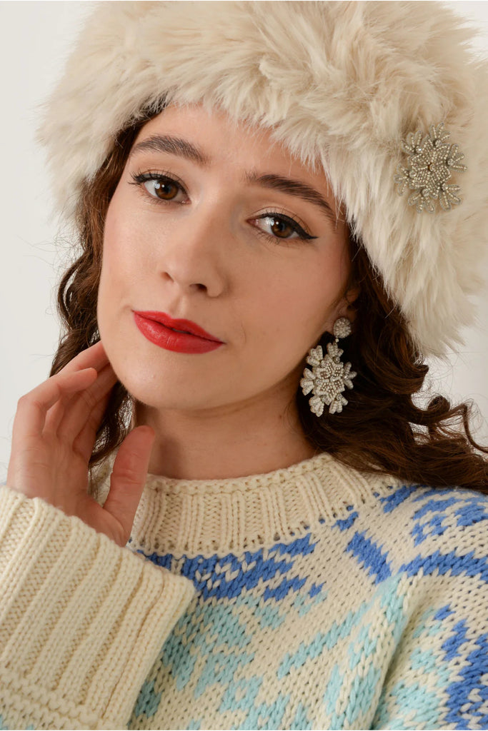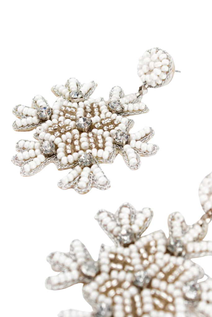 Elevate your winter wardrobe with these exquisite handmade snowflake earrings, crafted by skilled artisans in India. Each pair features delicate glass beads meticulously arranged onto a lightweight fabric backing, creating a stunning statement piece that catches the light beautifully. Perfect for adding a touch of sparkle to any occasion, these earrings combine artisanal craftsmanship with effortless elegance. The featherlight design ensures all-day comfort, making them ideal for both everyday wear and special events. A truly unique accessory that celebrates traditional artistry.