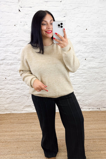 Elevate your wardrobe with The Asdis Jumper in Cream, a cosy knit designed for effortless style and comfort. Featuring delicate button details on the back, this jumper adds a subtle yet chic touch to your look. Perfect for layering or wearing on its own, it blends softness with a refined finish, making it a versatile staple for your a/w wardrobe.