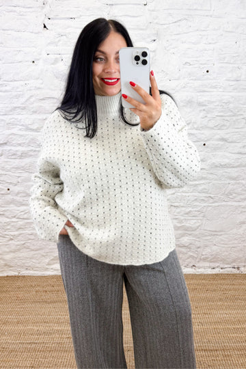 Elevate your wardrobe with the Kamara Jumper, featuring a high neck design for added warmth and a sleek silhouette. Crafted from a cosy knit fabric, it offers comfort without compromising style. Subtle black darts enhance the fit, creating a refined and flattering shape perfect for layering under jackets or wearing solo. This versatile piece blends understated elegance with everyday ease, making it a must-have for chic, effortless looks.