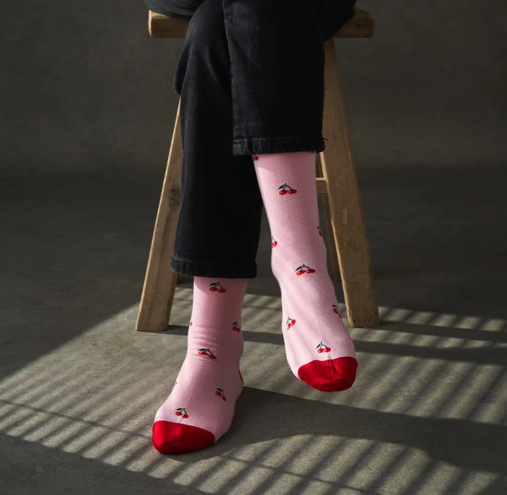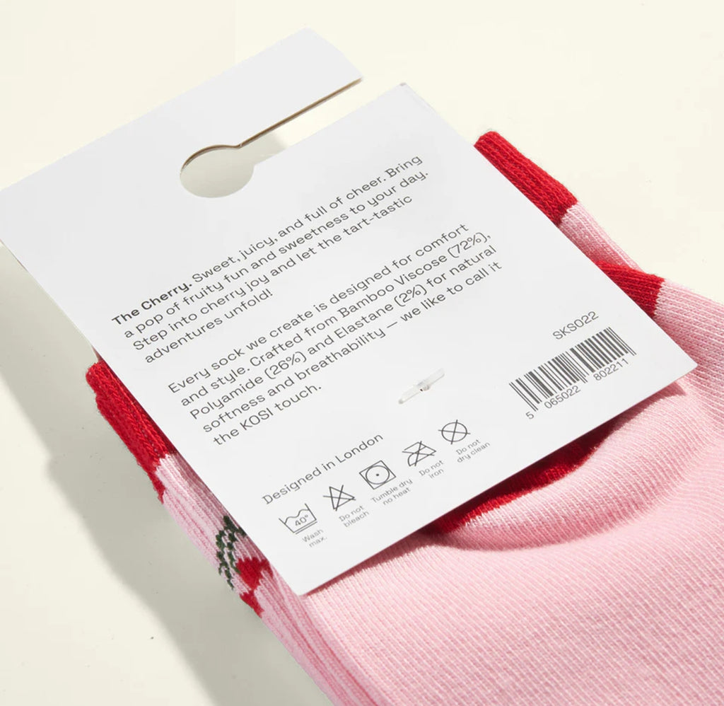 Step up your sock game with The Cherry Socks by KOSI, combining elegance and durability. Crafted from a superior mix of Bamboo Viscose, these socks provide a smooth, breathable feel that keeps your feet comfortable throughout the day. Designed to preserve their shape and softness, they stay looking and feeling fresh wash after wash. Ideal for anyone who appreciates enduring style and exceptional quality in every stride.