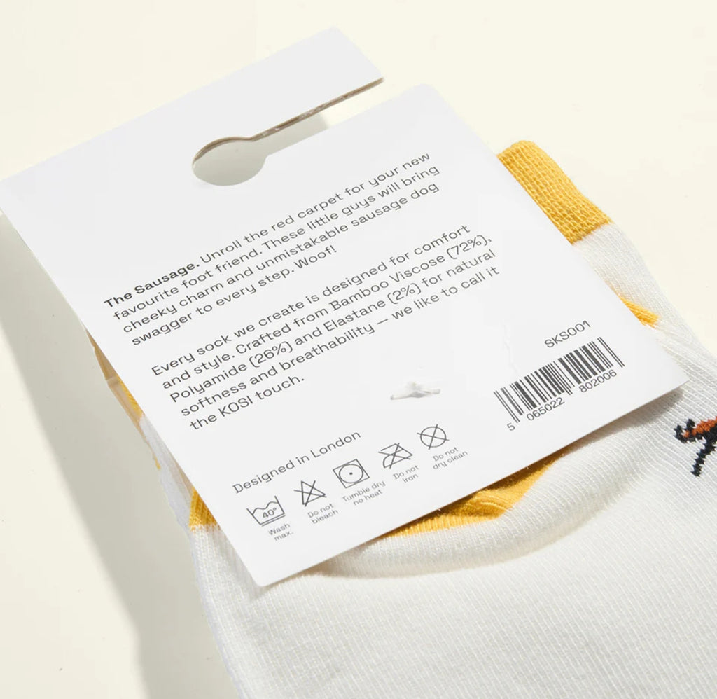 Step up your sock game with The Sausage Socks by KOSI, combining elegance and durability. Crafted from a superior mix of Bamboo Viscose, these socks provide a smooth, breathable feel that keeps your feet comfortable throughout the day. Designed to preserve their shape and softness, they stay looking and feeling fresh wash after wash. Ideal for anyone who appreciates enduring style and exceptional quality in every stride.