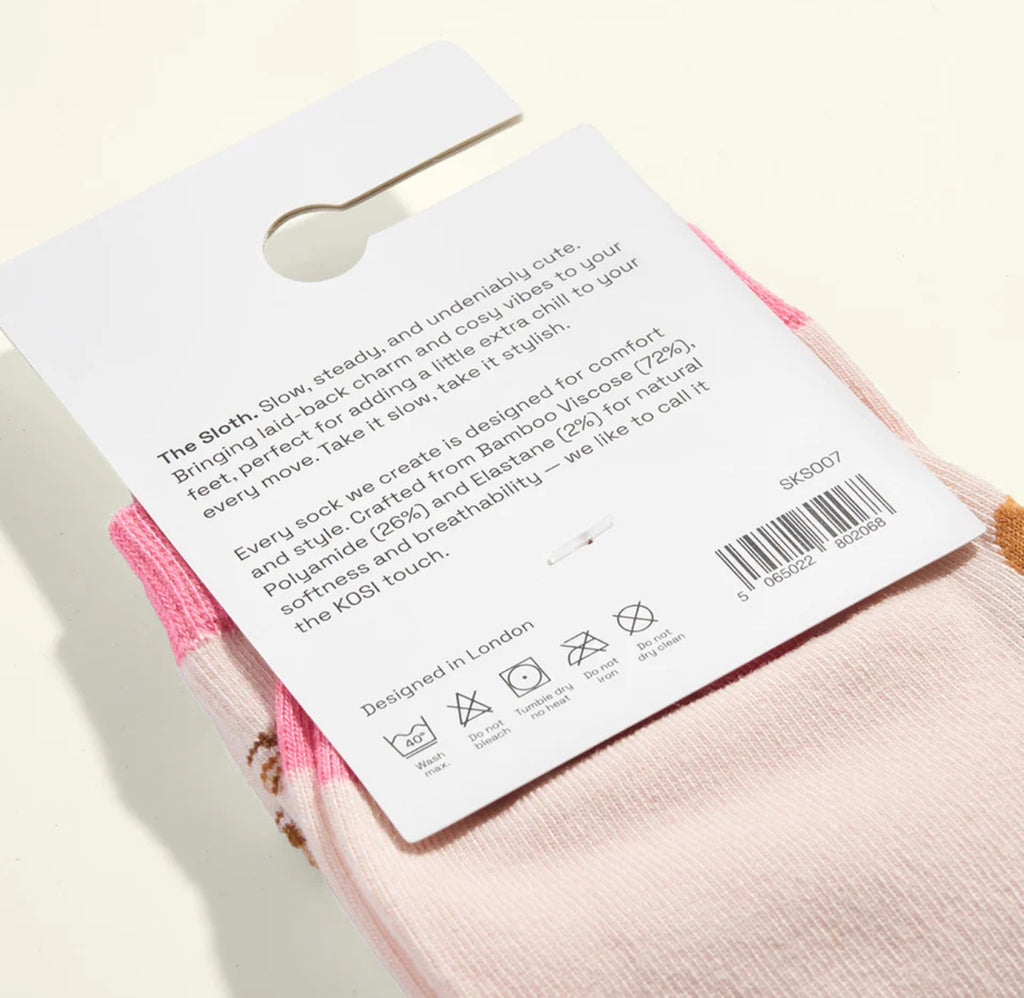 Step up your sock game with The Sloth Socks by KOSI, combining elegance and durability. Crafted from a superior mix of Bamboo Viscose, these socks provide a smooth, breathable feel that keeps your feet comfortable throughout the day. Designed to preserve their shape and softness, they stay looking and feeling fresh wash after wash. Ideal for anyone who appreciates enduring style and exceptional quality in every stride.