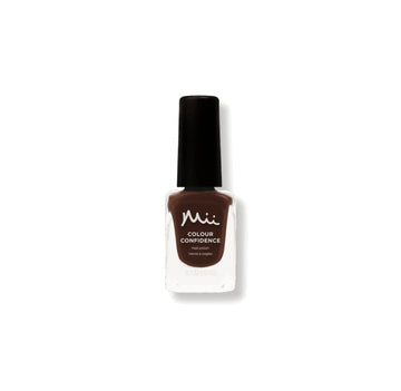 Chocolate brown crème nail polish. Explore a variety of hues and express yourself with Mii's Colour Confidence Nail Polish. Mii's fast-drying formula contains a high-performance vitamin complex, including Vitamin C, A, and E to nourish and protect nails. Achieve a salon-worthy, chip-resistant manicure with Mii's pro-glide brush that expertly delivers precise and even coverage. Choose from bold primary, soft pastel, vivid bright, or nude shades for your desired look.