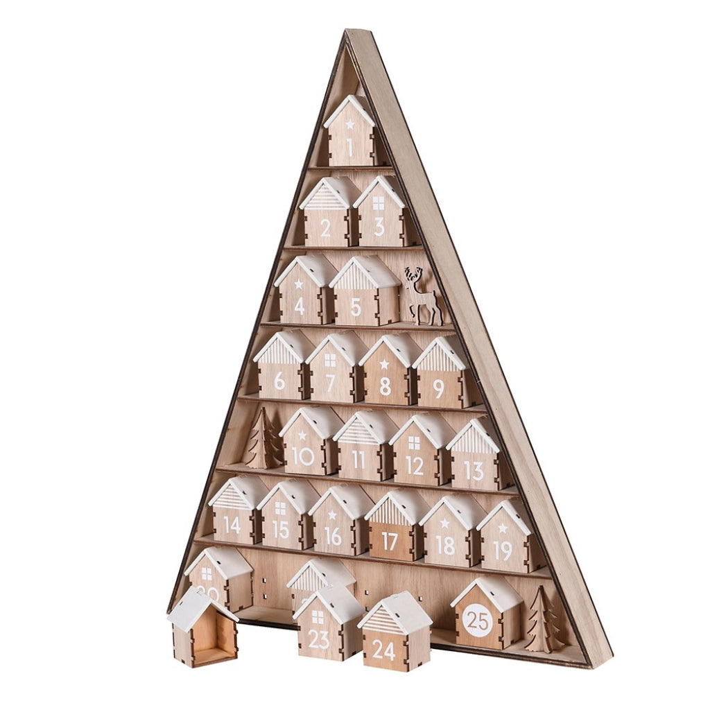 Elevate your festive countdown with this charming wooden advent calendar. A timeless piece that brings warmth and anticipation to your seasonal décor. Crafted from natural wood, it seamlessly complements any interior aesthetic, from minimalist modern to cosy traditional settings. Each numbered compartment invites daily discovery, making the lead-up to Christmas a cherished ritual for the whole family. Display it prominently on a shelf or mantelpiece as both a functional calendar and a beautiful decorative accent that celebrates the magic of the season.