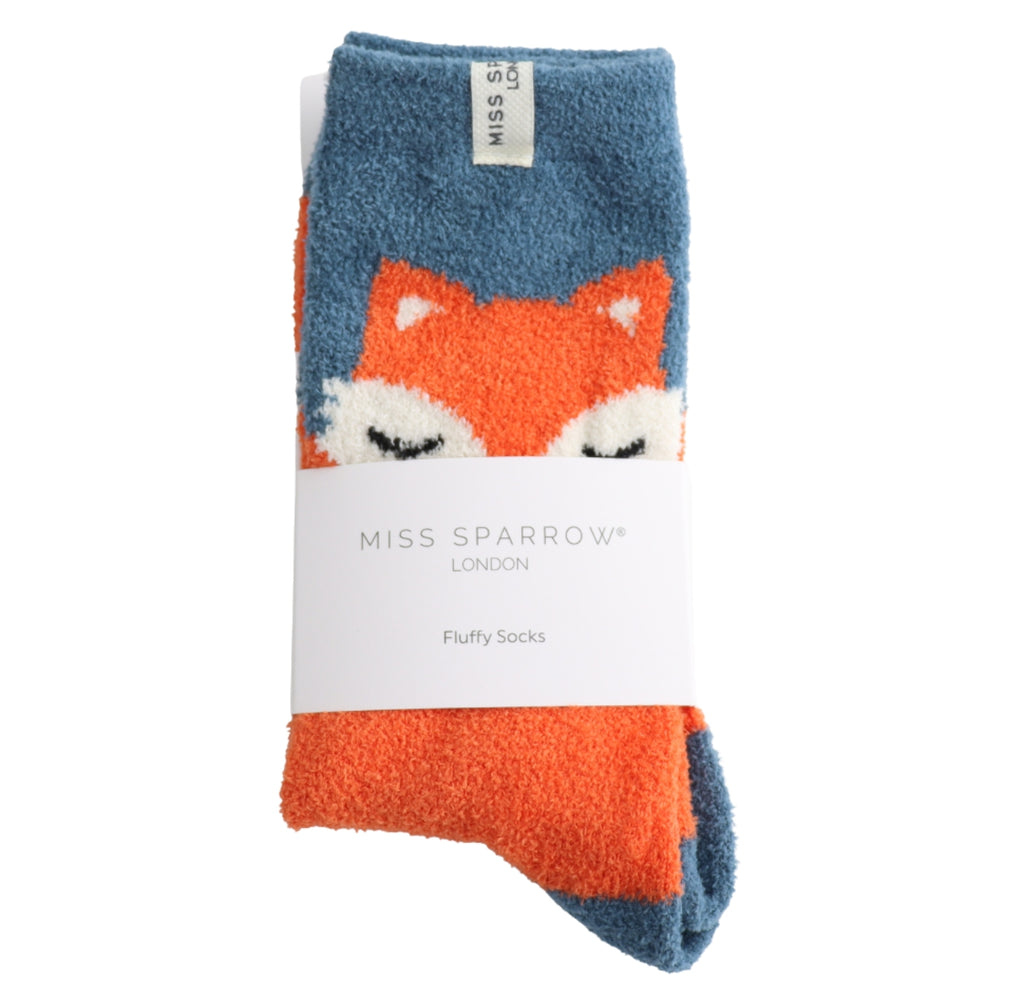 Miss Sparrow Blue Fluffy Sleepy Fox Socks