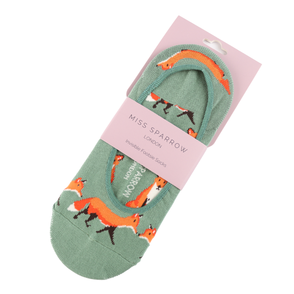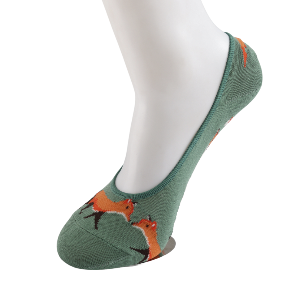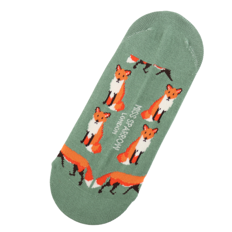 Miss Sparrow Dark Green Foxes Invisible Footsie Socks