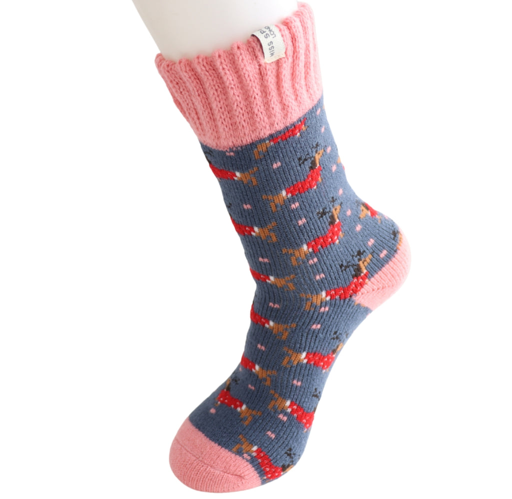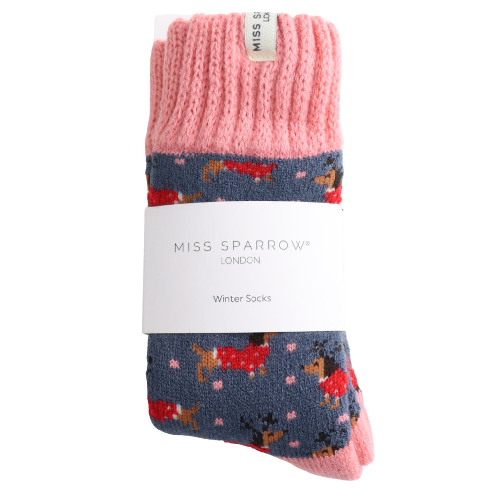 Miss Sparrow Denim Winter Christmas Sausage Dogs Socks