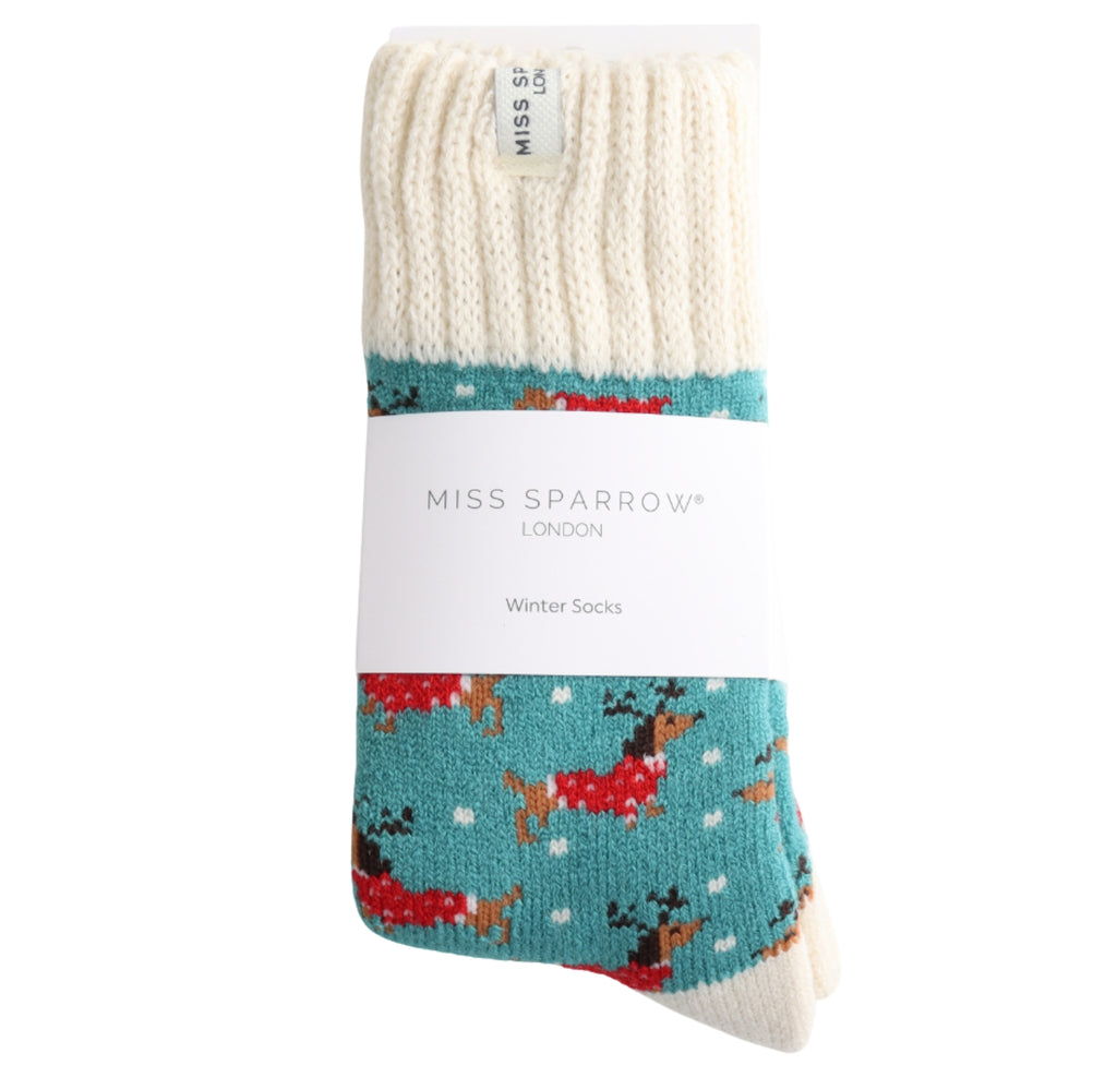 Miss Sparrow Duck Egg Winter Christmas Sausage Dogs Socks