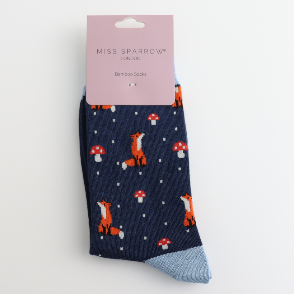 These Miss Sparrow Navy Fox & Toadstool Socks combine charming woodland designs with the natural comfort of bamboo fabric. Soft, breathable, and eco-friendly, they keep feet cosy while adding a playful touch to any outfit. Perfect for everyday wear, these socks offer gentle moisture-wicking and durability for lasting comfort.
