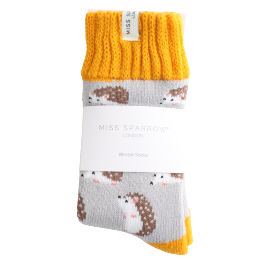 Miss Sparrow Silver Winter Cute Hedgehogs Socks