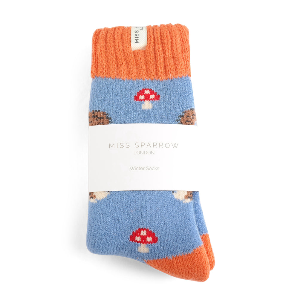 Miss Sparrow Cornflower Winter Hedgehogs & Toadstool Socks