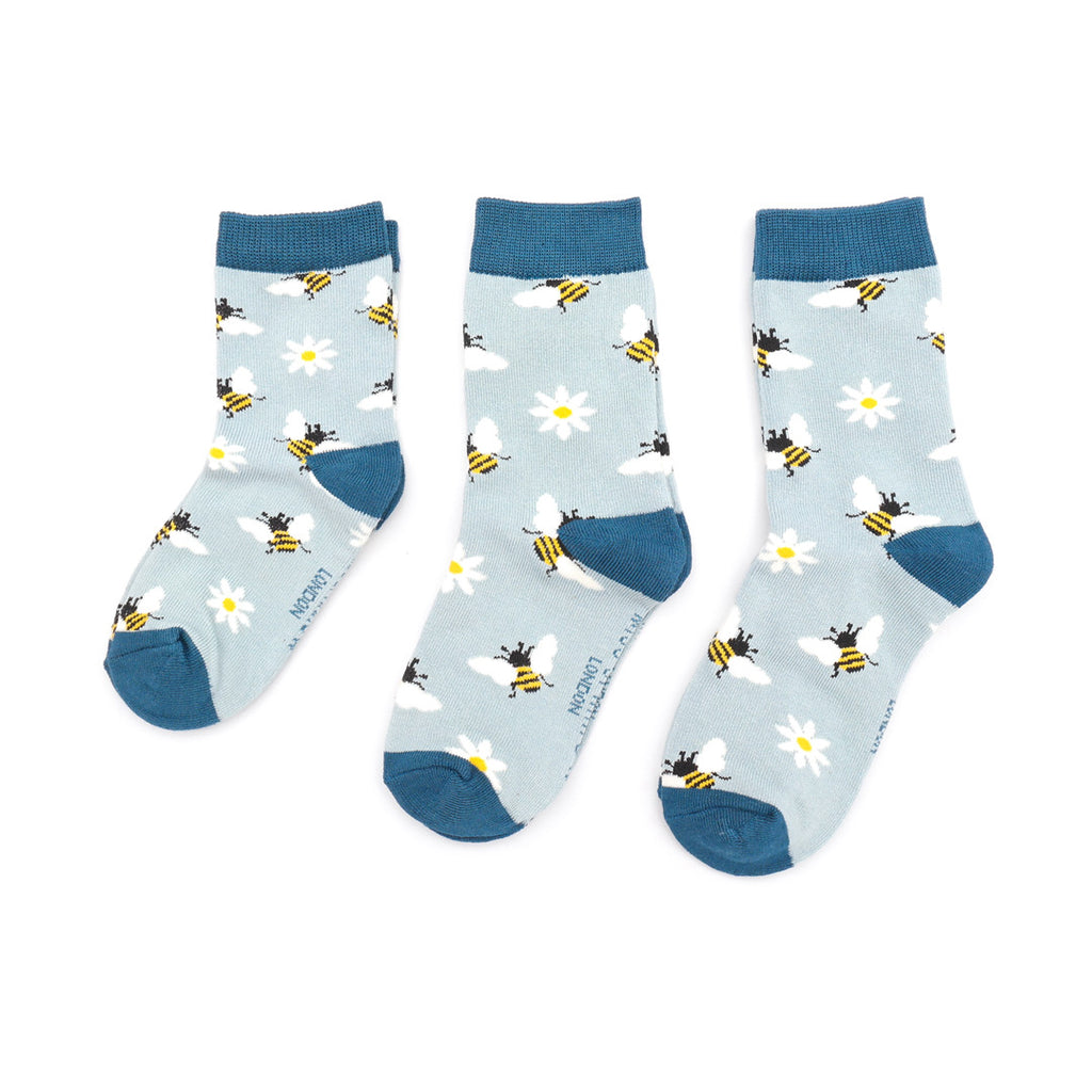 Miss Sparrow Girls Bees & Daisies Socks | Duck Egg 2-3 Years