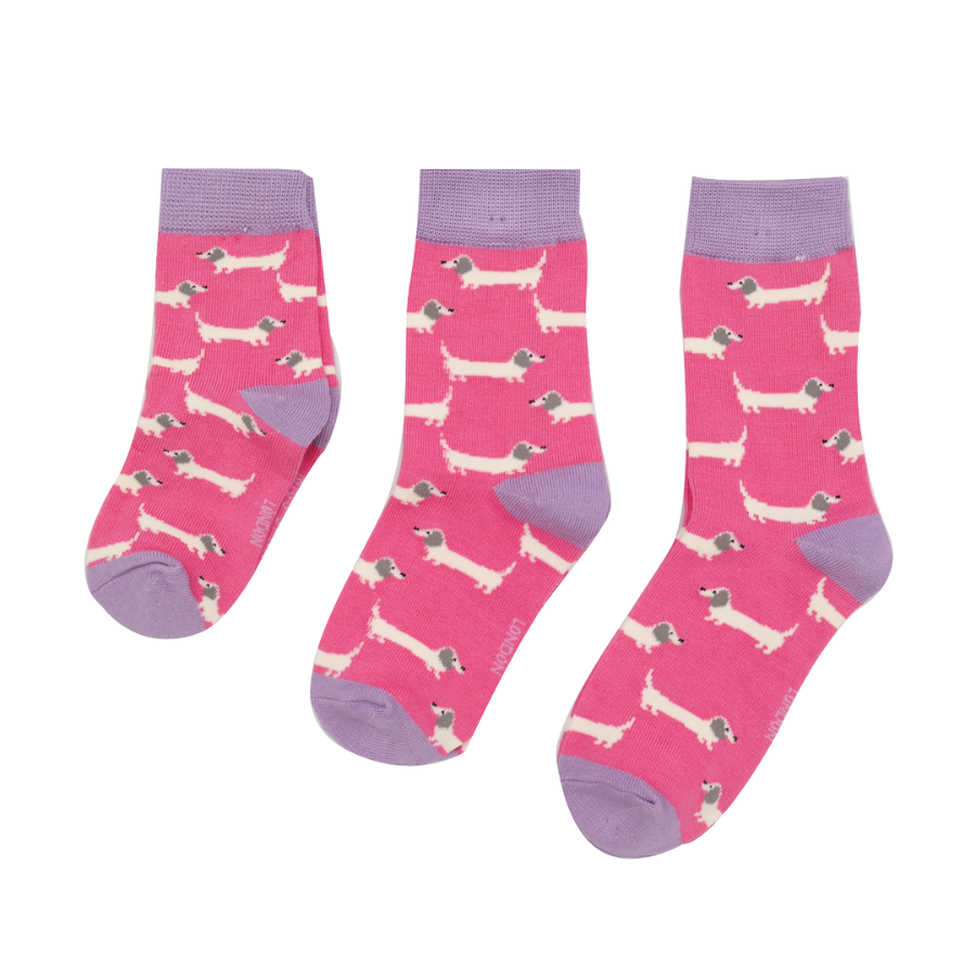 Miss Sparrow Girls Sausage Dogs Socks | Bright Pink 7-9 Years