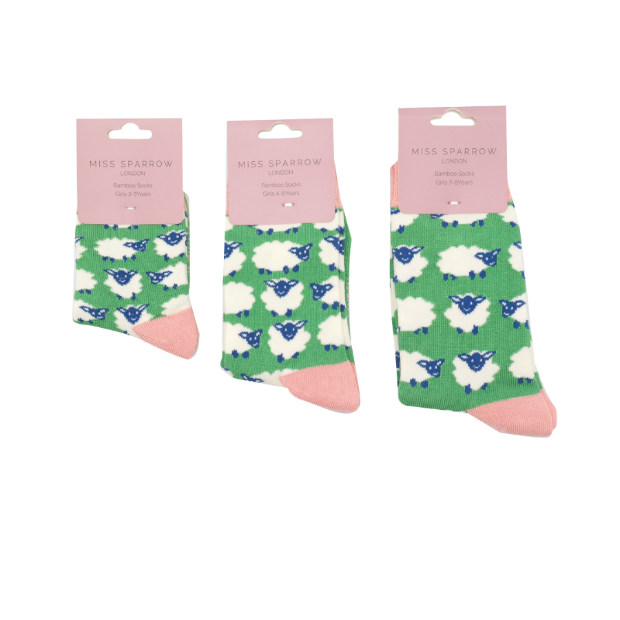Miss Sparrow Sheep Socks | Green 7-9 Years