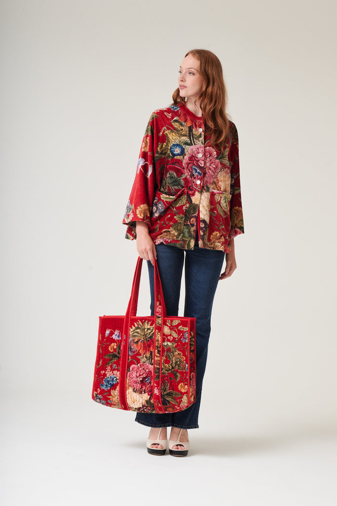 One Hundred Stars Primula Berry Velvet Tote Bag