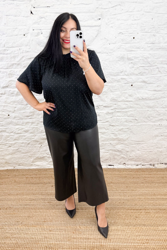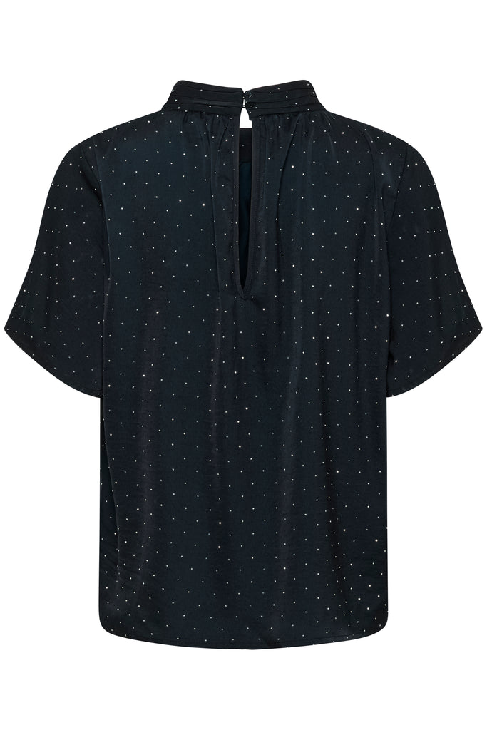 Elevate your wardrobe with The Aileen Top in Black, featuring a luxurious satin sheen that catches the light with every movement. Delicately adorned with subtle stud sparkles, this blouse exudes an elegant and sophisticated charm perfect for both day and evening wear. Its refined design effortlessly enhances your style, making it a standout piece in your wardrobe.