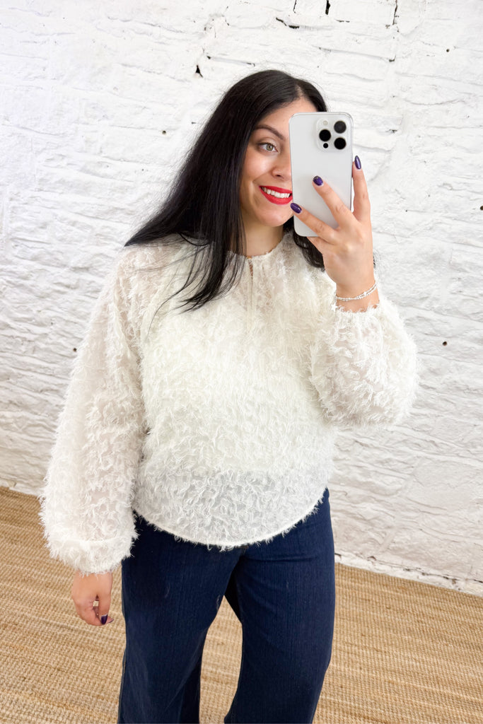 Elevate your wardrobe with The Nilsine Blouse in white, featuring a chic leopard print sheer texture that makes a bold statement. This blouse effortlessly blends daring style with delicate fabric, perfect for adding an edge to both casual and dressy looks. Its lightweight, translucent material offers a sophisticated allure, making it a versatile piece for fashion-forward outfits.