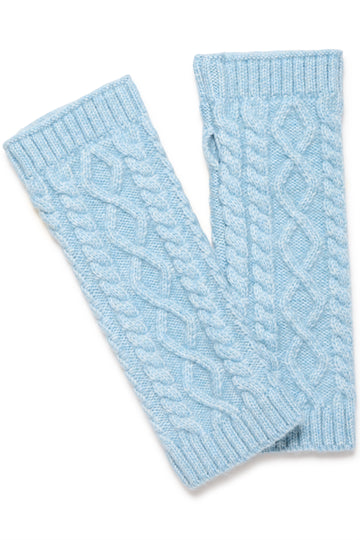 Elevate your winter wardrobe with The Lucy Gloves in Alaskan Blue. These fingerless gloves feature a soft, cosy cable knit design and a practical thumb hole for ease of movement. Perfect for layering, they add a chic touch while keeping your hands warm and free to use your phone or accessories effortlessly. A stylish essential for chilly days.