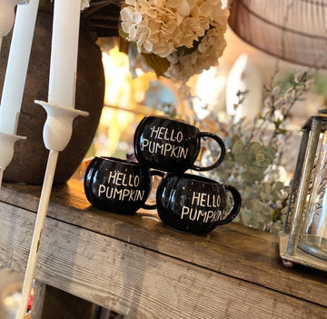 You'll be having a boo-tiful time sipping your favorite bev from this Hello Pumpkin Black Mug! Whether you're lounging with a cuppa or celebrating the season with a pumpkin spice latte, this mug will give your cosy autumn vibe a little touch of personality.