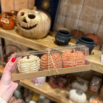 Add a touch of autumn to your home with our set of three small pumpkins. These charming pumpkins make for the perfect seasonal decor, bringing warmth and cosiness to any space.