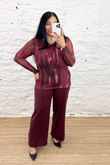 The Paloma Mesh Top in Port offers a versatile, fashion-forward edge to your wardrobe. Wear it dressed up with coated trousers for a sleek, polished look or layer it under knitwear to add texture and depth to your outfit. Its sheer mesh fabric creates a subtle statement, perfect for elevating both casual and dressy ensembles with effortless style.