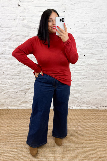 The Mafa Roll Neck in Red is a sleek, lightweight knit top designed for effortless layering. Its soft fabric and classic roll neck silhouette make it a versatile wardrobe staple, perfect for adding warmth and style to any outfit. Elevate your everyday look with this essential piece that blends comfort and chic simplicity.