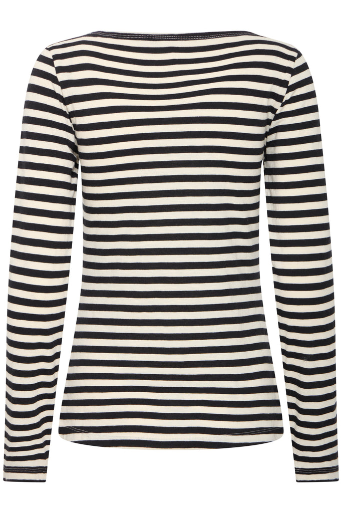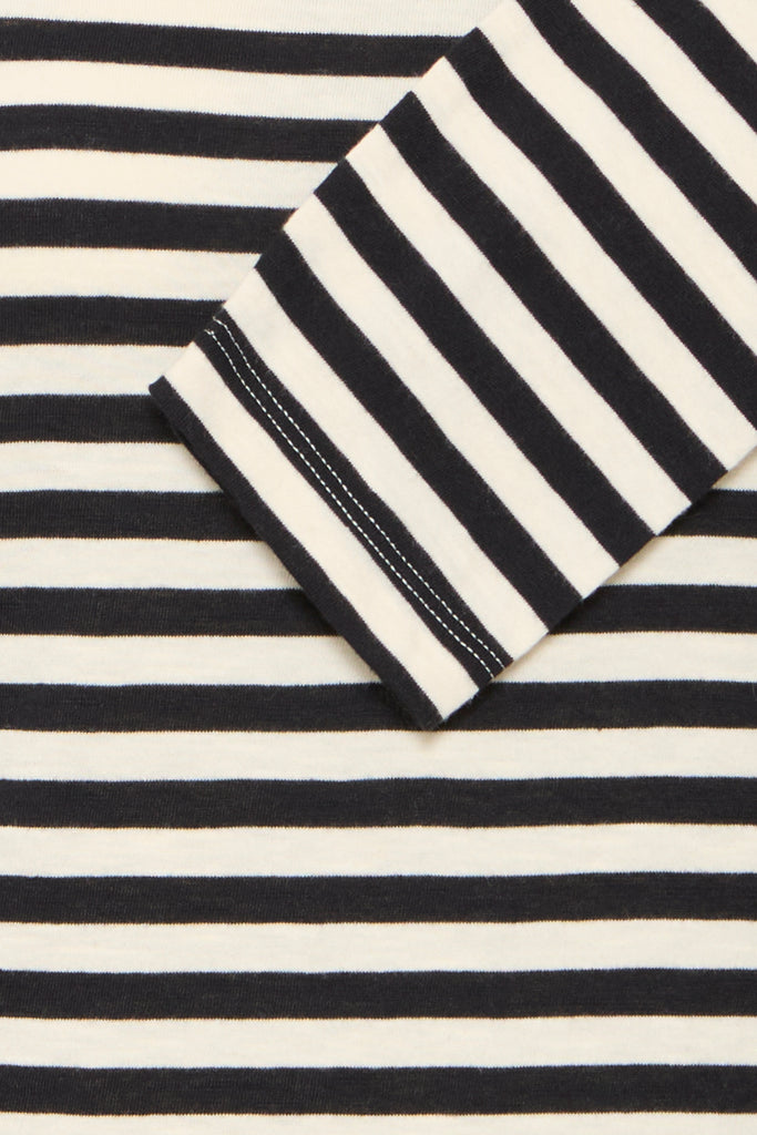 Elevate your autumn/winter wardrobe with The Mye Striped Tee in Black. This long-sleeve essential features classic stripes, making it a versatile staple that effortlessly layers under jackets or pairs with your favourite jeans. Its timeless design ensures you stay stylish and comfortable as the seasons change.