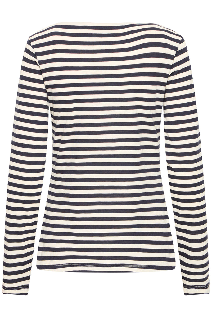 Elevate your autumn/winter wardrobe with The Mye Striped Tee in Navy. This long-sleeve essential features classic stripes, making it a versatile staple that effortlessly layers under jackets or pairs with your favourite jeans. Its timeless design ensures you stay stylish and comfortable as the seasons change.