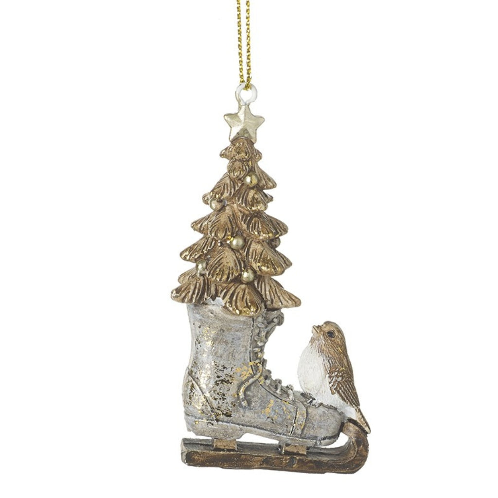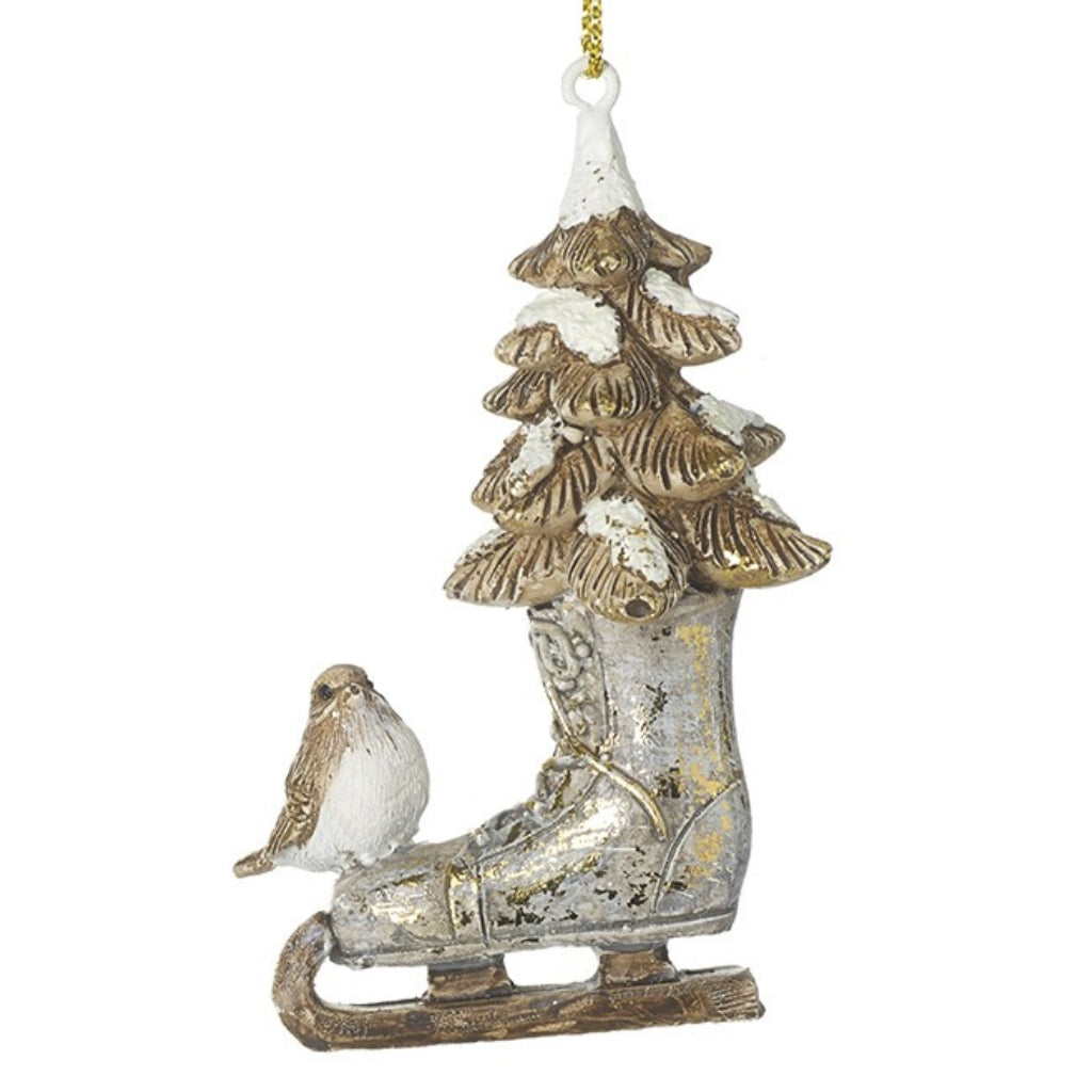 Christmas Tree Ice Skates with Birds Hanging Decoration